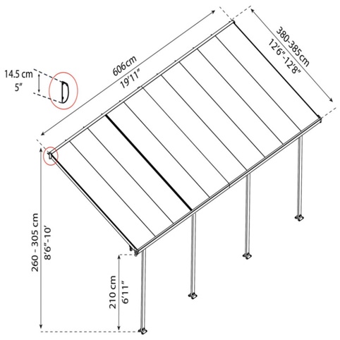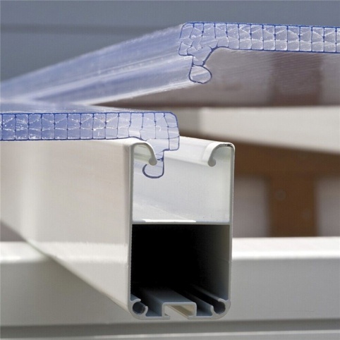 Canopia Feria terrasseoverdækningen er opbygget med tag i 8 mm polycarbonatplader og en pulverlakeret aluminiumramme, der giver en stabil løsning til udendørs brug. Overdækningen leveres som saml-selv og er udstyret med et click’n’lock-system, der gør samlingen enkel og sikker. Systemet låser pladerne fast mellem profilerne og hjælper med at holde konstruktionen tæt, så vand ikke trænger igennem. Der medfølger galvaniserede stålbeslag.