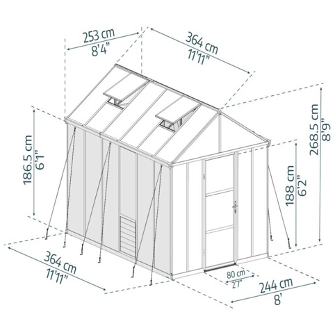 Glory er et rummeligt og robust drivhus, der giver dig stærke rammer til at dyrke grøntsager, krydderurter og blomster i et stabilt og behageligt indeklima. Den høje tagkonstruktion giver god ståhøjde og ekstra plads til at dyrke og støtte høje, frodige planter, mens den brede indgang og lave tærskel gør det nemt at komme ind med f.eks. trillebør. Drivhuset har en solid aluminiumsramme og leveres med en galvaniseret stålbundramme.