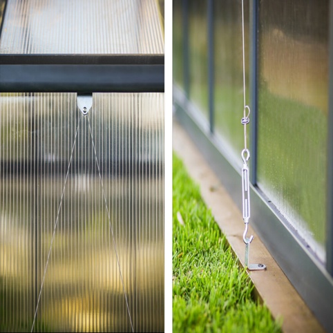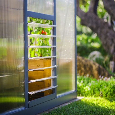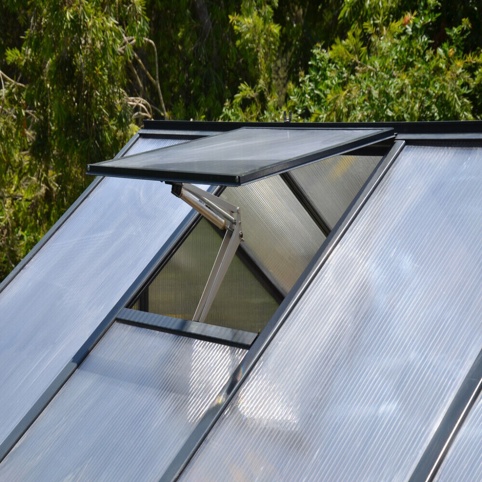 For at gøre det lettere at styre fugt og temperatur medfølger der tilbehør til ventilation, herunder tagventil med automatisk åbner samt sidevindue med persienner, så du kan regulere luftcirkulationen efter behov. Glory har integreret forankringssystem og et regnvandssystem med lukkede tagrender, der gør det muligt at opsamle regnvand til vanding. Drivhuset samles med et glidende panelsystem.