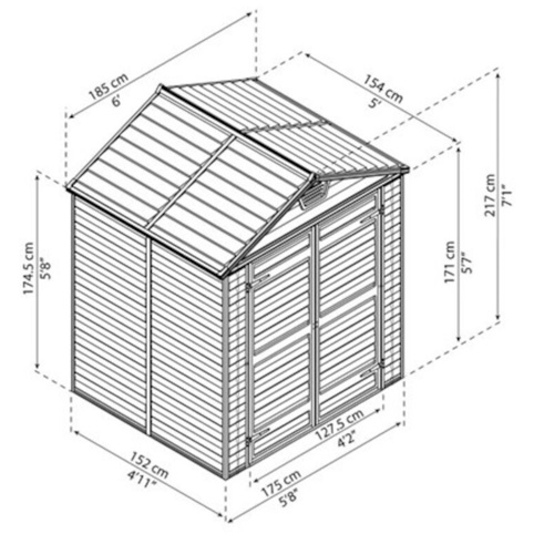 ”Canopia Skylight ”-redskabsskuret er opbygget af en stabil konstruktion, hvor profilrammen er af aluminium, og ovenlystaget er af 100 % UV-beskyttet polycarbonat-paneler, der giver et naturligt lysindfald. Desuden har redskabsskurets dør et låsebeslag, der giver sikker opbevaring (låsen er ikke inkluderet). Inde i skuret er der en galvaniseret bundramme i stål, der giver optimal stabilitet, og de brede dobbeltdøre og lavt dørtrin giver nem adgang til skuret. Gulvet har anti-slip med forankringsmulighed inkluderet. Dertil har skuret ventilationsåbninger for og bag, som sikrer god udluftning.