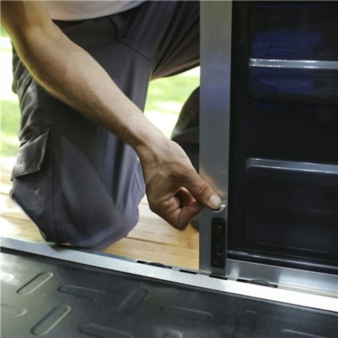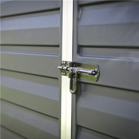 Derudover gør materialerne, at skuret er vedligeholdelsesfrit, og det er ikke modtageligt overfor rust, råd og afskalning. Materialernes overflade er vaskbare, så du nemt kan fjerne skidt og snavs. Redskabsskuret kommer som en saml-selv-pakke, og den er udstyret med et ”Slide N'Lock”-panelsystem, som egner sig til at blive samlet af 2 personer. Systemet gør det nemt at samle skuret, så find dit værktøj og arbejdshandskerne frem og få hjælp af en ven til montering.