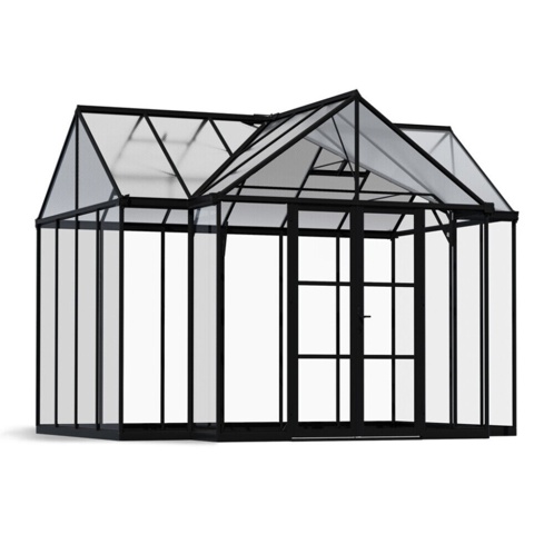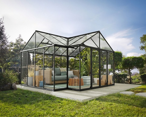 Triomphe er et lyst og indbydende orangeri, der giver dig mulighed for at forlænge havesæsonen og skabe et beskyttet miljø til både dyrkning og ophold. Den T-formede konstruktion giver en behagelig fornemmelse af plads og en mere afskærmet stemning, så orangeriet kan bruges som en grøn oase, hvor du kan nyde haven i læ for vind og vejr.