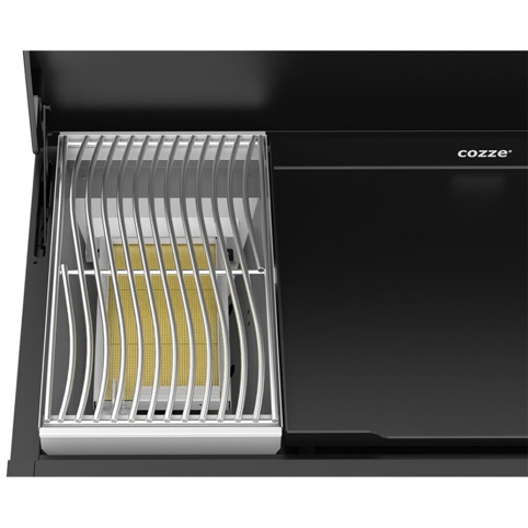 Cozze® Combo 900 giver dig det bedste fra to verdener: en kraftfuld infrarød brænder, der leverer intens varme i restaurantkvalitet og en stor plancha-flade, hvor du kan tilberede alt fra grøntsager og skaldyr til pandekager og smashburgere. Du får frihed til at stege, brase og sautere på samme tid – alt samlet i én elegant enhed, der passer perfekt ind i det moderne udekøkken. Den præcise varmefordeling gør det nemt at opnå perfekte resultater, uanset om du laver hurtig hverdagsmad eller inviterer gæster til en festlig middag på terrassen.