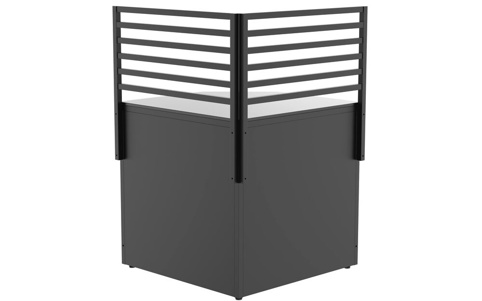 Med dette elegante hjørne-gitter kan du skabe en diskret afskærmning på hjørnet af dit udekøkken uden at lukke for udsigten. De vandrette lameller giver et moderne, let udtryk. Rækværket er designet til at blive monteret direkte på Cozze Elements-kollektionen. Den robuste, pulverlakerede metalramme er vejrbestandig og kræver minimal vedligeholdelse. Brug et enkelt modul som markering af enden på køkkenet, eller kombinér flere for at skabe en sammenhængende afskærmning rundt om hele køkkenområdet.