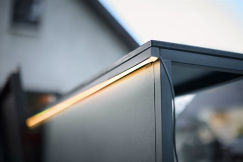 Giv dit udekøkken både stemning og funktionelt arbejdslys med et fleksibelt LED-bånd, der monteres direkte i Cozze-skinnen. Installationen er enkel: tryk båndet ind i skinnen med den oplyste side nedad, så lyset rettes mod arbejdsfladen og ikke blænder. LED-båndet kan tilpasses længden – du kan afkorte ved de markerede sektioner for hver 50 mm. Når du har klippet, afslutter du altid med en endehætte på den afklippede ende for at sikre vandtæthed.