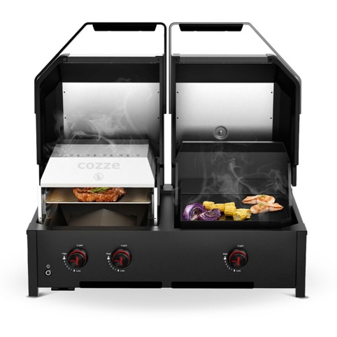 Tag din udendørs madlavning til nye højder med Cozze® Quattro 900 – en kraftfuld 4-i-1 grill, der giver dig frihed til at lave alt fra saftige steaks til sprøde pizzaer. Med tre gasbrændere kombineret med to infrarøde brændere får du både intens, direkte varme og en jævn temperatur, der gør det nemt at tilberede forskellige retter på én gang. Den store grillflade med både rist, pizzasten og plancha giver dig plads til at samle familie og venner om måltidet, og fleksibiliteten gør det let at variere menuen efter lyst og anledning.