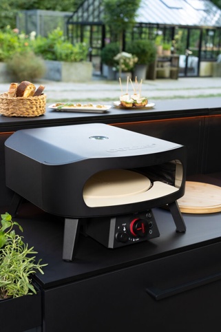 Cozze 13” Rotate Black Edition er en kompakt gaspizzaovn, der gør det let at bage pizzaer i restaurantkvalitet hjemme. Den roterende pizzasten sørger for en mere ensartet bagning, så du får en sprød bund og et flot resultat – og pizzaen kan være færdig på bare 2 minutter. Ovnen har samtidig et højt ovnrum og et frontvendt kontrolpanel, så du får en mere komfortabel og overskuelig pizzabagning.