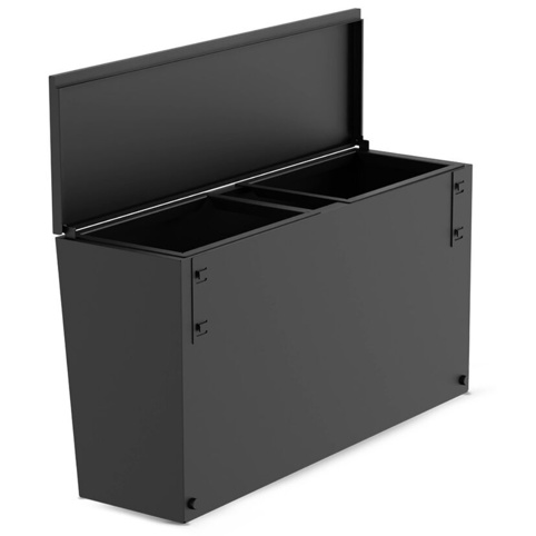 Med denne skraldespand kan du fuldende dit udekøkken – du kan nemt montere den på alle Elements-moduler samt på grillstationen (der medfølger beslag og skruer hertil). Det enkle, sorte design spiller flot sammen med moderne udekøkkener og terrasser, så affaldet bliver skjult – uden at gå på kompromis med helhedsindtrykket. Inde i skraldespanden gemmer der sig to separate beholdere, så du kan sortere køkkenaffald, pant eller emballage, lige dér hvor du står og laver mad. De løse spande kan løftes op, når de skal tømmes eller rengøres, så det er hurtigt at holde området omkring udekøkkenet pænt.