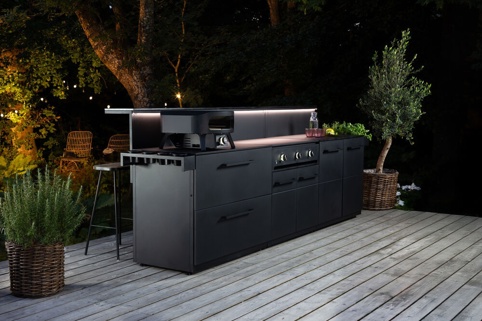 Den zinkbelagte, pulverlakerede stålkonstruktion med non-stick overflade er både robust og let at vedligeholde: en hurtig aftørring, og stationen ser ny ud igen. Brug den fritstående som elegant mise-en-place, eller integrér den i Cozze Element for en konsekvent, arkitektonisk linje gennem hele udekøkkenet.