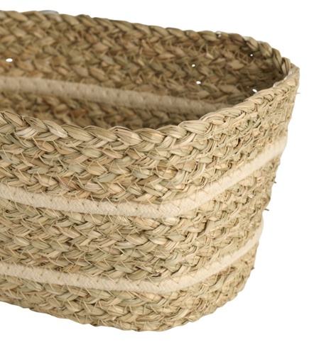 Denne fine kurv er perfekt til opbevaring af mange forskellige ting i boligen, f.eks. garn, tekstiler, legetøj og hobbyartikler. Kurven er fremstillet af flettet søgræs, og det slidstærke reb er udført i polyester. Dimensionerne på kurven er H: 25 cm x B: 15 cm x D: 13 cm.