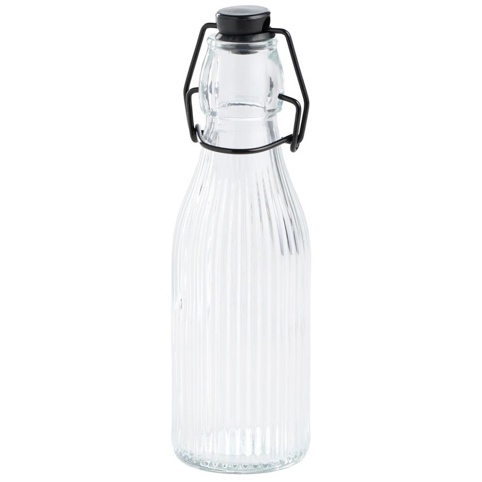 <h2>Saftflaske til hjemmelavede drikkevarer</h2><p>Denne praktiske saftflaske er ideel til opbevaring af hjemmelavede drikkevarer – f.eks. saft eller juice. Flasken har et rillet design og er fremstillet af transparent glas. Den er udstyret med et tætsluttende låg, så dine drikkevarer holdes friske i længere tid.</p>