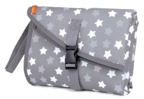 Underlaget kommer desuden med en velcro-bærestop, så du kan hænge den på barnevognen, når du er ude på farten. Skifteunderlagets udvendige clips sikrer, at den let kan foldes sammen. Du kan blot bruge en fugtig klud til at rengøre skifteunderlaget. Det vandafvisende underlag er i et tyndt og let materiale, så det er nemt at pakke ned efter brug. Dimensionerne på underlaget er 60,5 cm x 42,5 cm.