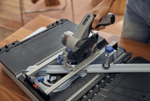 Blueprint-savstationen er en del af Dremels modulære system, som gør det muligt at løse flere opgaver med færre værktøjer. Den har et intuitivt design og er nem at bruge – uanset om du vil montere profiltræ, lægge vinylgulv eller arbejde på en fremtrædende væg. Der medfølger desuden materialestøtter og skæreguides, så du kan tilpasse opsætningen til netop dit projekt.
