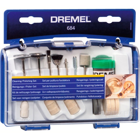 Skal du bruge dit Dremel-multiværktøj til rensning eller polering af dit projekt, er dette tilbehørssæt helt perfekt. Sættet består af 20 dele, som gør det nemt at fjerne snavs, rust og misfarvninger samt opnå en skinnende finish på metal, plast og andre overflader. Den medfølgende opbevaringsæske har en udtagelig tilbehørsbakke og 3 rumopdelere, der sikrer nem organisering og hurtig adgang til tilbehøret.