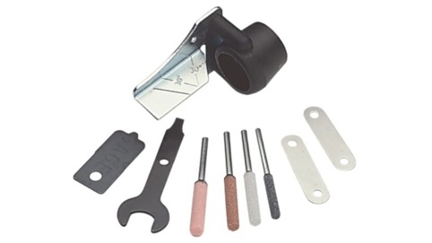 Sættet indeholder alt, hvad du skal bruge: 1 x vinkelstyr til slibeforsats, 1 x justeringsmåler, 1 x nøgle, 4 x slibesten 4,0 mm (453), 4,5 mm (457), 4,8 mm (454) og 5,6 mm (455), 2 x afstandsstykker./p>