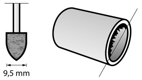 Dremel slibesten 952 er en mellemstor, kegleformet slibesten, der er ideel til præcisionsarbejde som slibning, afgratning og skærpning af en lang række materialer. Den er særligt velegnet til brug på metallignende, jernholdige materialer som rustfrit stål, aluminium, messing og kobber.