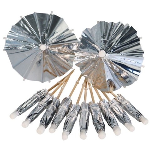 Sølvfarvet drinks-paraplyer til drinks, desserter, tapas o.l.