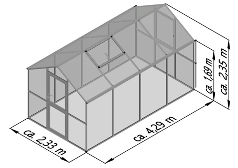 Drivhuset er udstyret med 10 mm flerlags-polycarbonatplader i sider og gavle, som giver et klart lysindfald og en mere åben drivhusfornemmelse, samtidig med at du får en robust løsning til hverdagsbrug. Det leveres med praktiske ventilationsmuligheder, så du nemt kan regulere temperatur og fugt, når solen varmer op. Det gør det lettere at holde et stabilt drivhusklima, hvor planterne trives, og hvor du kan bruge drivhuset aktivt i hele vækstsæsonen. Du skal være opmærksom på, at der ikke medfølger fundamentsramme hertil.
