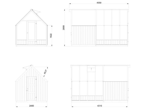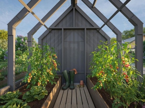 Drivhuset har store glaspaneler i 4 mm hærdet sikkerhedsglas, som gør det velegnet som drivhus og til dyrkning af bl.a. grøntsager, blomster og krydderurter. Dertil har drivhuset et ventilationsvindue, som kan give planterne optimale vækstbetingelser. Drivhusets skelet og redskabsskuret er opbygget af træpaneler, der er fremstillede i præfabrikerede elementer.
