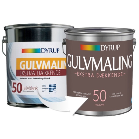 Dyrups oliebaserede gulvmaling er ekstra dækkende, og den er med glans 50. Det betyder helt konkret for dig, at du får en maling, som er nem at påføre, og hvor resultatet er både slidstærkt og ekstremt vaskbart. Og hvem drømmer ikke om et gulv, som er nemt at røre rent? Du kan både bruge malingen på trægulve og afhærdede gulve støbt i beton eller cement.