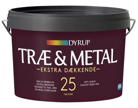 Brug denne træ- og metalmaling fra Dyrup ― den kan anvendes både inde og ude på træværk og på grundet metal. Malingen er ideel til dine døre, dørkarme, paneler, lister, møbler m.m. Malingen har en halvmat, kalkhvid overflade med glans 25. Den er meget vaskbar og nem at rengøre i løbet af den travle hverdag. Til dig, der har børn og/eller husdyr, er en høj glans en fordel.