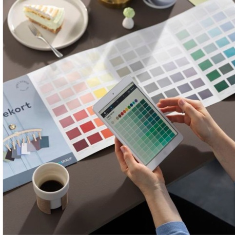 Søger du en særlig farvenuance til din stue, dit køkken, soveværelse eller entré? Så kan du med vores digitale farvevælger klikke dig igennem vores store farveudvalg og se de mange forskellige farve- og nuancemuligheder for netop dit malerprojekt. Farvevælgeren kan også vise, hvordan din valgte farve vil se ud på den overfladetype, der skal males, og ikke mindst illustrere farven på væggen i den type rum, du vælger farve til. Når du har valgt din ønskede farve, vil farvevælgeren anbefale hvilken type af maling, du kan vælge, og hvor meget du har brug for til dit projekt ud fra de kriterier og farvenuancer, du har valgt. Udover maling er det også muligt at få tonet din træbeskyttelse helt gratis.