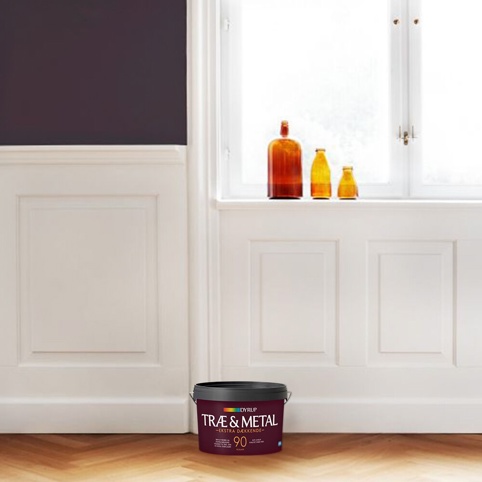 Hvis du ønsker en utrolig vaskbar og dækkende maling til træ og metal, så har du fundet den ‒ Dyrups træ- og metal-maling med glans 90. Malingen er hvid, men den kan tones i flere forskellige farver. Den er hurtigtørrende og vandbaseret, hvis du skulle få brug for at blande den med vand for at bruge den som grunder på stærkt sugende overflader.