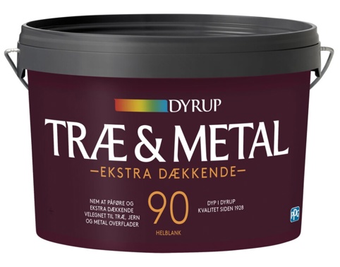 Hvis du ønsker en utrolig vaskbar og dækkende maling til træ og metal, så har du fundet den ‒ Dyrups træ- og metal-maling med glans 90. Malingen er hvid, men den kan tones i flere forskellige farver. Den er hurtigtørrende og vandbaseret, hvis du skulle få brug for at blande den med vand for at bruge den som grunder på stærkt sugende overflader.