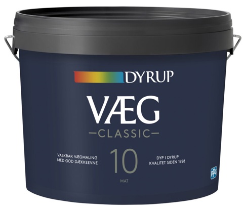 Dyrups Classic-vægmaling kan tones i lige den farve, du drømmer om. Læs mere om vores gratis farvetoning-service. Malingen fås i flere forskellige kvantiteter. Får du en rest i overskud, skal du blot sørge for at opbevare den tillukket, tørt og frostfrit. Det er rart med lidt maling i gemmerne. Dyrups emballage er lavet af 70 % genbrugsplast.