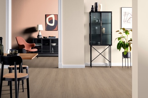 Her finder du en robust, dekorativ og moderne gulvløsning til dit hjem. Laminatplankegulvet fra Egger kommer her i farven Brown Victoria Oak, der er en lækkert varm brun udgave af det klassiske egetræslook, som giver en hyggelig bund til ethvert rum i boligen. Home-serien er en meget holdbar, rengøringsvenlig og hygiejnisk gulvløsning, da plankernes laminatoverflade er både smudsafvisende, antibakteriel og antistatisk. Derudover udmærker dette gulv sig ved at være vandresistent i op til 24 timer med sit vandtætte Aqua CLIC it!-kliksystem.