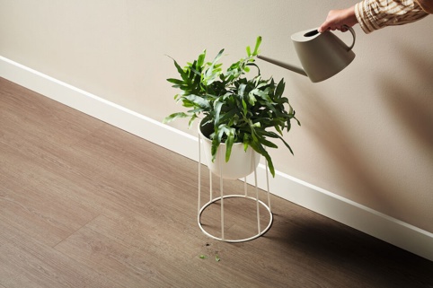 En tur med støvsugeren er nok til at fjerne almindeligt skidt og snavs i hverdagen, og når det er tid til en gulvvask, kan du med fordel anvende gulvsæbe til gulvtypen og en fugtig moppe. Efterlad ikke vand på gulvet og fjern altid pletter så hurtigt som muligt og tør efter med en opvredet klud.