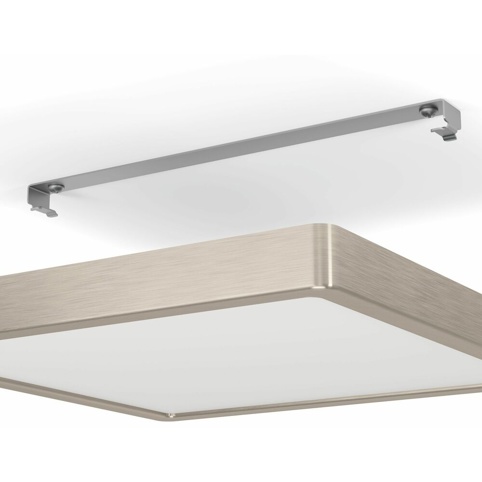 Loftslampen er af stål, og lampeskærmen er af plast. Lampen måler L: 28,5 cm x B: 28,5 cm x H: 2,8 cm, og den har IP20-klassificering, så den er kun egnet til indendørs brug og ikke i vådrum. OBS! Dette produkt indeholder LED-lyskilde, som ikke kan udskiftes.