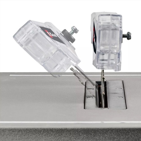 Savklingen kan vinkles op til 45°, hvilket gør det muligt at udføre præcise geringssnit i kombination med det integrerede vinkelanslag, der fungerer i et område fra -45° til +45°. For øget sikkerhed kan savklingen desuden højdejusteres, så du altid kan arbejde kontrolleret og tilpasset materialet. Maskinen har et stabilt parallelanslag med klemanordning på begge sider, hvilket sikrer nøjagtige længdesnit selv i større arbejdsemner.