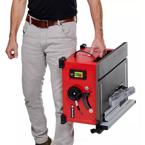 Einhell TC‑TS 8 bordsaven er en kompakt og mobil maskine, der er ideel til både hjemmeværkstedet og byggepladsen. Med en kraftig motor på 1200 W og en skærehøjde på op til 45 mm håndterer den effektivt træ, fiberplader og mange andre materialer. Den robuste rørrammekonstruktion kombineret med et solidt arbejdsbord i stål giver høj stabilitet og præcision under arbejdet.
