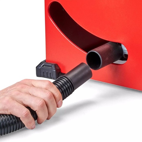For at holde arbejdsområdet rent er saven udstyret med en integreret spånudsugningsstuds på huset, og takket være de indbyggede holdere til både parallelanslag, vinkelanslag og skydestok er det nemt at transportere saven sikkert uden løse dele. Den medfølgende hårdmetalbestykkede HM‑savklinge leverer rene og kraftfulde snit, hvilket gør maskinen velegnet til både finarbejde og mere krævende opgaver.