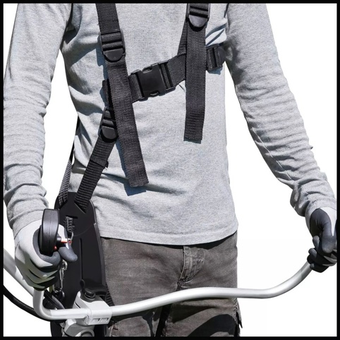 Buskrydderen er udstyret med et ergonomisk tohåndsstyr i aluminium, formet som et cykelstyr, som giver dig god kontrol under arbejdet. Alle betjeningselementer er samlet lige ved styret, så du nemt kan justere undervejs uden at afbryde arbejdet. Du kan også hurtigt tilpasse buskrydderen til opgaven ved at skifte mellem den medfølgende 3-tands klinge og trådspolen med tipautomatik. Det gør den velegnet til både kraftig rydning og lettere trimning af græs og ukrudt.