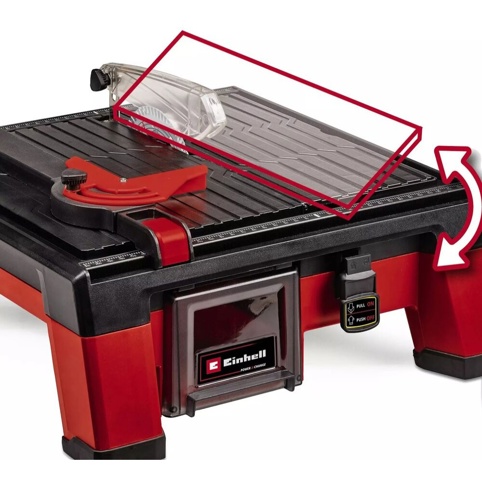 Maskinen arbejder med op til 3.800 omdrejninger i minuttet og er udstyret med en Ø115 mm diamantskæreskive, der leverer en skæredybde på op til 24 mm ved 90° og 16 mm ved 45°, hvilket gør den velegnet til de fleste typer fliser. Arbejdsbordet kan vippes fra 0° til 45°, så du kan udføre skråsnit og mere krævende vinkelskæringer uden besvær.