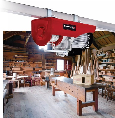 Med Einhell TC-EH 600 får du en stærk hjælper, når tunge ting skal løftes sikkert på plads i værkstedet, garagen eller i forbindelse med byggeprojekter derhjemme. Hejseværket er udstyret med en ekstra lang, kinkfri wire på over 18 m. Uden styretrisse kan du løfte genstande med en maks. vægt på 300 kg op til en højde 18 m og med en hastighed på 8 m/min. Ved hjælp af den medfølgende styretrisse kan du løfte genstande med en maks. vægt på 600 kg op til en højde 9 m og med en hastighed på 4 m/min.
