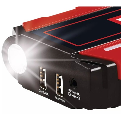 Einhell CE-JS 12/1-jumpstarter og powerbank er en smart og kompakt energistation, der både kan starte flade bilbatterier (12 V / 200 A) og oplade dine mobile enheder som mobiltelefon, tablet og kamera. Det gør den perfekt til bilen, campingturen eller som backup derhjemme. Du kan bruge den til starthjælp af benzinmotorer op til 4,0 L og dieselmotorer på til 2,0 L. Det kraftfulde batteri med en kapacitet på 3 x 3.700 mAh leverer pålidelig strøm, og ladestatus vises tydeligt på LED-indikatoren.