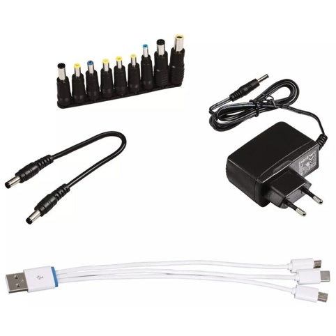 Den integrerede LED-arbejdslampe har konstant lys, stroboskop og SOS-funktion, der er ideel til nødsituationer. Med både USB-port (5 V / 2 A) og Speed Charging-port kan du oplade flere enheder hurtigt og effektivt. Der er desuden en 12 V / 10 A-udgang til bilkompressor/pumpe og en 19 V/3,5 A-udgang til bærebare computere m.m. Der medfølger startkabler med fuldisolerede polklemmer og overbelastningsbeskyttelse, USB-adapterkabel (mikro/mini-USB), ledning med 9 forskellige adaptere til bærbare computere, 230 V-adapter og praktisk opbevaringskasse.