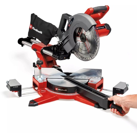 Einhell TE‑SM 36/10 L Li‑Solo er en alsidig batteridrevet kap-/geringssav, der giver dig friheden til at arbejde helt uden ledninger og samtidig leverer styrken til at udføre nøjagtige snit i træ og pladematerialer. Som en del af Power X‑Change‑serien fungerer saven med 2 stk. 18 V batterier (medfølger ikke), hvilket giver en samlet driftsspænding på 36 V og dermed en stærk, stabil skæreydeevne. Det gør arbejdet mere fleksibelt, særligt når du bevæger dig rundt på byggepladsen eller i et værksted, hvor adgang til strøm ikke altid er ideel. Med en tomgangshastighed på op til 3.800 omdrejninger i minuttet og en skærebredde på op til 340 mm er den velegnet til både præcisionssnit og større opgaver.