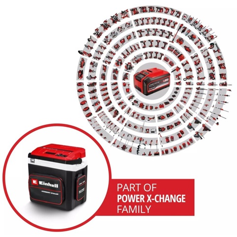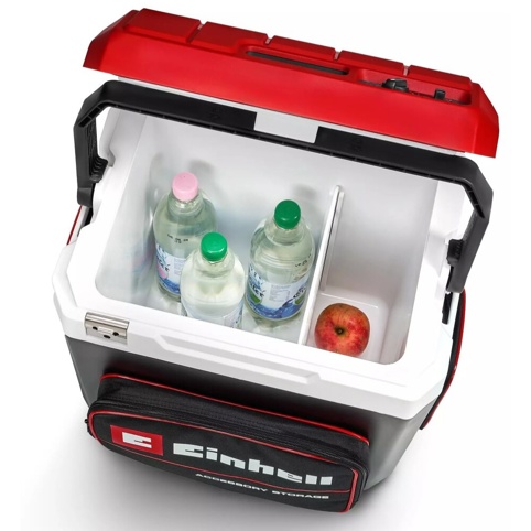 Einhells køleboks TE-COL 18/27 Li er en trofast følgesvend, når du vil holde mad og drikke enten koldt eller varmt – uanset om du er på tur, på arbejde eller bare nyder en pause i solen. Den rummelige boks på 27 liter har god plads til både dåser, flasker og madvarer. Der kan f.eks. være 36 dåser á 0,33 L, 20 flasker á 0,5 L eller 6 store flasker á 1,5 L, og med det fleksible gitter kan du nemt inddele indholdet, så det hele ligger, som det skal.