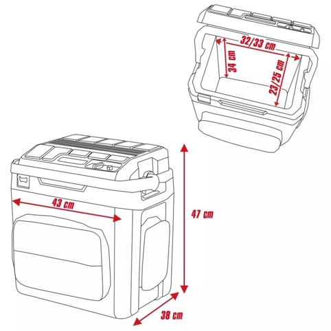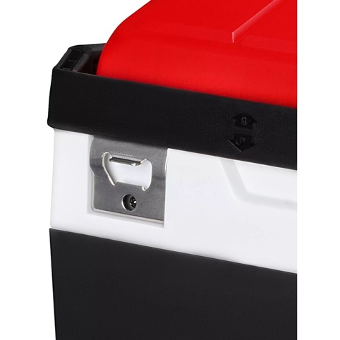 Den indbyggede flaskeåbner gør det ekstra nemt at slukke tørsten, og de praktiske lommer giver plads til både tilbehør og ekstra udstyr. Med en drejeknap kan du justere temperaturen trinløst – helt ned til 20 °C under omgivelserne eller op til 60 °C, hvis du vil holde maden lun. Boksen er nem at tage med takket være det store bæregreb og den justerbare skulderrem med pude.
