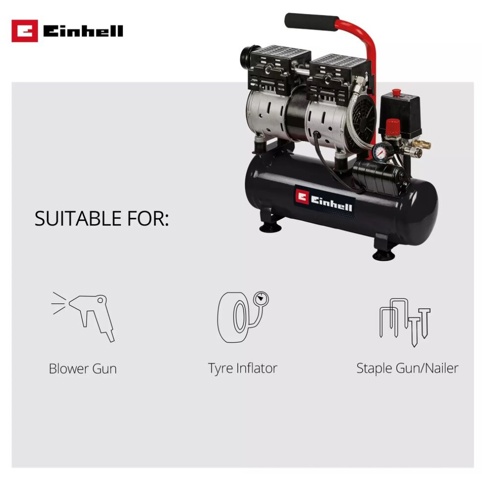 Kompressoren er desuden let at have med rundt. Den lave vægt på ca. 15 kg, det praktiske håndtag og de vibrationsdæmpende fødder gør den nem at flytte og sikrer den står stabilt under brug. Einhell yder 10 års garanti mod gennemtæring af kedlen.