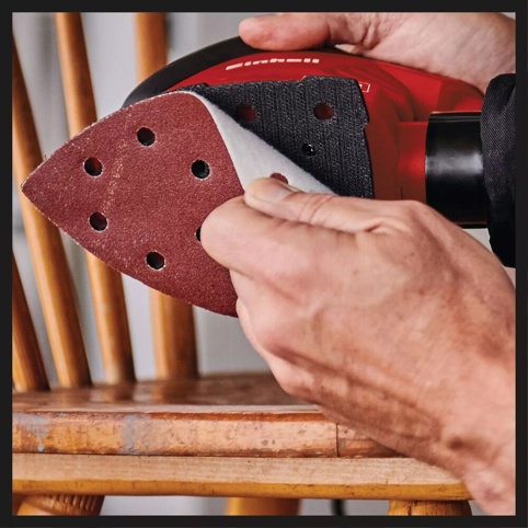 Multisliberen er forsynet med burrefæste, der gør, at du kan skifte slibepapir meget hurtigt. Og så sliber maskinen meget effektivt, da slibepapiret sidder godt fast på sålen uden at glide. Du har desuden mulighed for at tilslutte en støvsuger til maskinen, så støv suges væk med det samme, og luften holdes ren – så slipper du også for den efterfølgende rengøring af arbejdsområdet. Derudover medfølger der også en filterpose til maskinen.