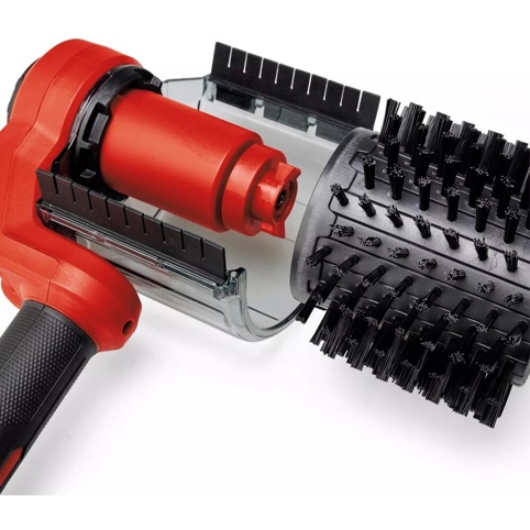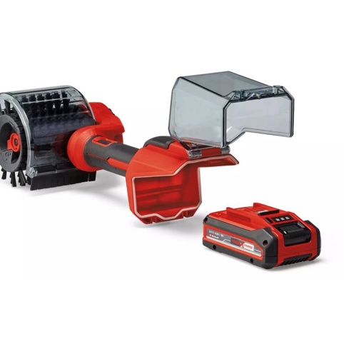 Rengøringsbørsten egner sig særligt godt til vådrengøring, og er udstyret med en vandsikker afskærmning til beskyttelse af batteriet samt en aftagelig stænkvandsafskærmning, der beskytter dig mod vand og snavs under rengøringen. Der medfølger 2 børster, 3 rengøringssvampe, 1 svampeholder og 1 vægholder til praktisk opbevaring af maskinen. Børster og svampe skiftes uden værktøj ved hjælp af en smart lukkemekanisme eller et burrefæste.