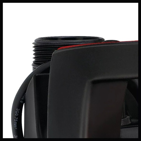 Tilslutningen er gjort let med en universaladapter, som passer til både 25 mm og 32 mm slanger samt 33,3 mm (G1") udvendigt gevind. Slangestudsen sidder oven på pumpen, så den er nem at komme til. Det ergonomiske bæregreb og den indbyggede kabelopvikling sikrer, at pumpen både er nem at flytte, og lige så nem at pakke væk, når arbejdet er udført.