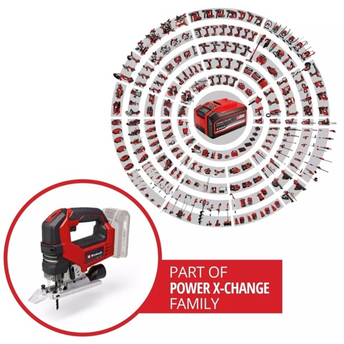 TP-JS 18/135 Li BL er en solo maskine, hvilket vil sige, at den leveres uden batteri og lader. Til maskinen skal du bruge 1 stk. 18 V Power X-Change-batteri.