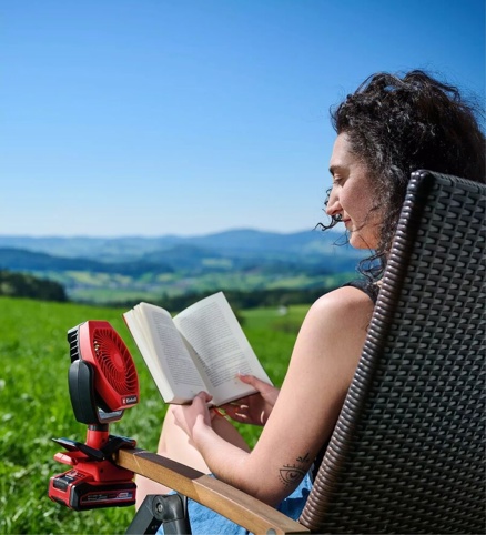 Når sommeren rammer, og luften står stille, er det rart med lidt bevægelse – og her kommer GC-CF 18/110 Li ind i billedet. Den kompakte ventilator fra Einhell er nem at tage med og lige så nem at placere, uanset om du sidder på altanen, arbejder i værkstedet, laver mad i køkkenet eller slapper af i teltet. Med en smart klemme kan den monteres stabilt på borde, rør eller vindueskarme, og det praktiske bærehåndtag gør den nem at flytte rundt.