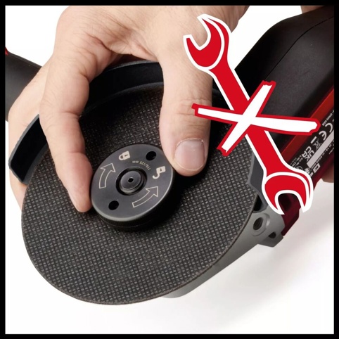 Vinkelsliber er en del af Einhells effektive batterisystem Power X-Change. Det betyder, at du kan bruge de samme batterier til alle Einhell-maskiner med tilsvarende batterisystem og spænding (V). Der medfølger ikke batteri til denne Solo-maskine, så du kan enten bruge et PXC-batteri, du har i forvejen, eller du kan tilkøbe et batteri separat. Med maskiner fra samme batterisystem kan du spare både ressourcer, penge og tid, når du ikke skal købe og opbevare mange forskellige batterier eller vente på en opladning.